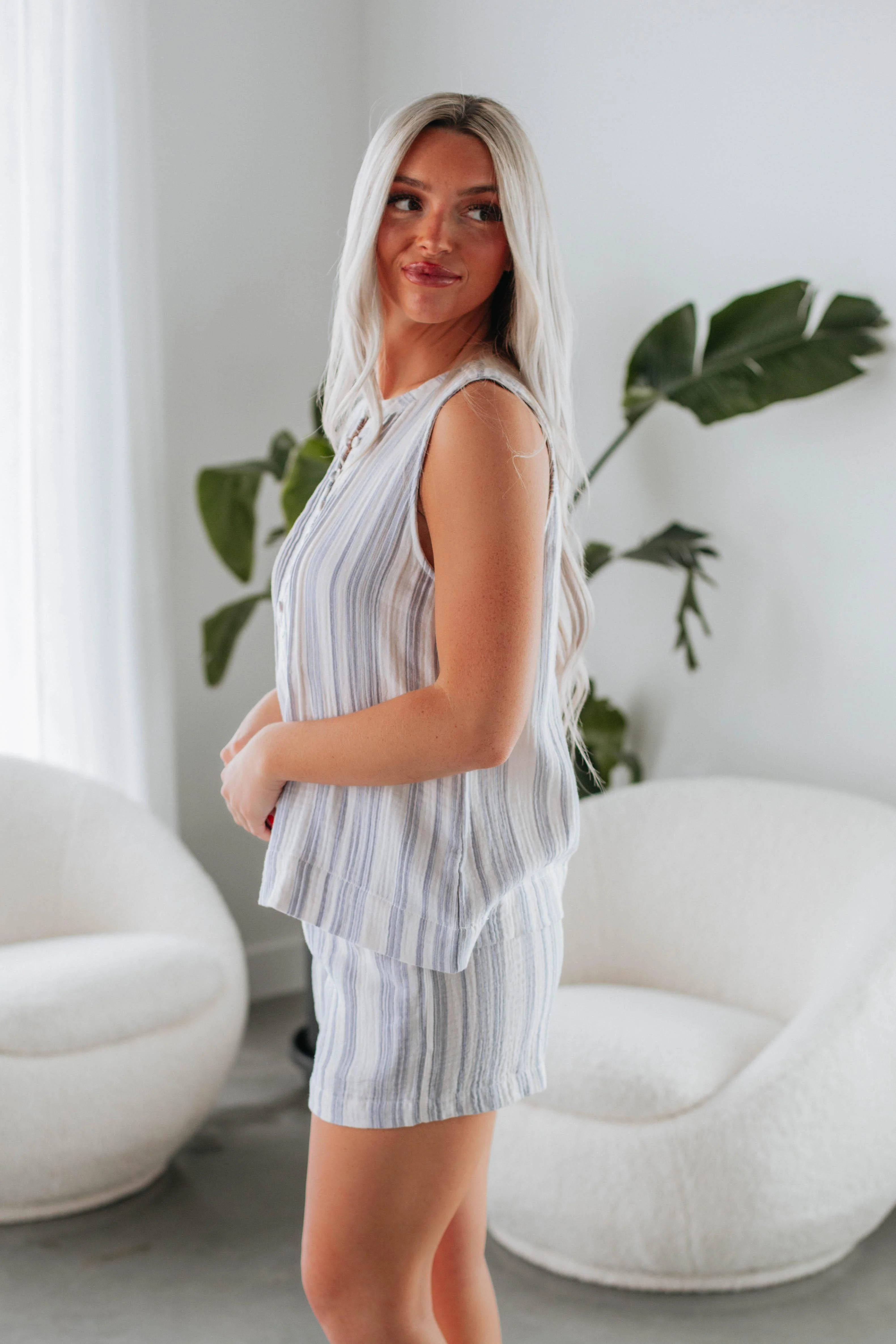 Dionne Striped Tank - Slate Blue